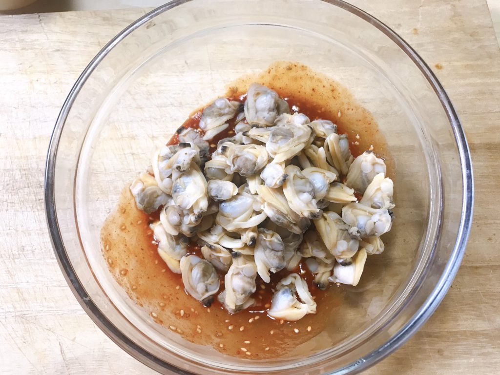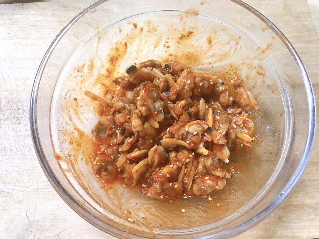 本来はタラの内蔵で作るのですが、簡単には手に入らないので今回は代用品としてアサリで作ります!